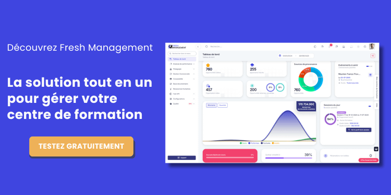 La gestion des actions de formation devient un jeu d’enfant avec Fresh Management. Suivez en temps réel le déroulement de vos sessions, gérez les présences des participants, générez des rapports détaillés sur l’avancement de chaque session, et assurez-vous que tout se passe comme prévu.