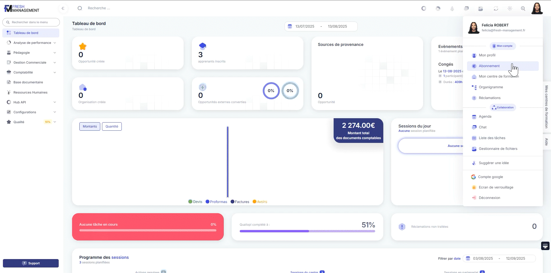 Fresh Management vous offre un espace de stockage sécurisé pour vos fichiers. Tous vos documents sont sauvegardés dans le cloud, garantissant ainsi leur sécurité et leur disponibilité à tout moment. Vous pouvez également définir des autorisations d’accès pour contrôler qui peut voir et modifier chaque fichier.