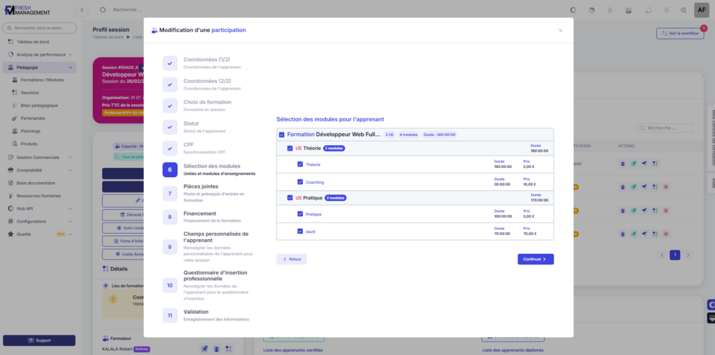 Les preuves recevables sont variées : grilles de diagnostic préalable, comptes-rendus d’entretien datés, formulaires d’inscription comportant des questions sur les besoins et objectifs, offres commerciales reflétant une analyse individualisée. Le document doit être daté, rattaché à un bénéficiaire identifié et produit avant l’entrée en formation. Fresh Management vous permet tout cela nativement.