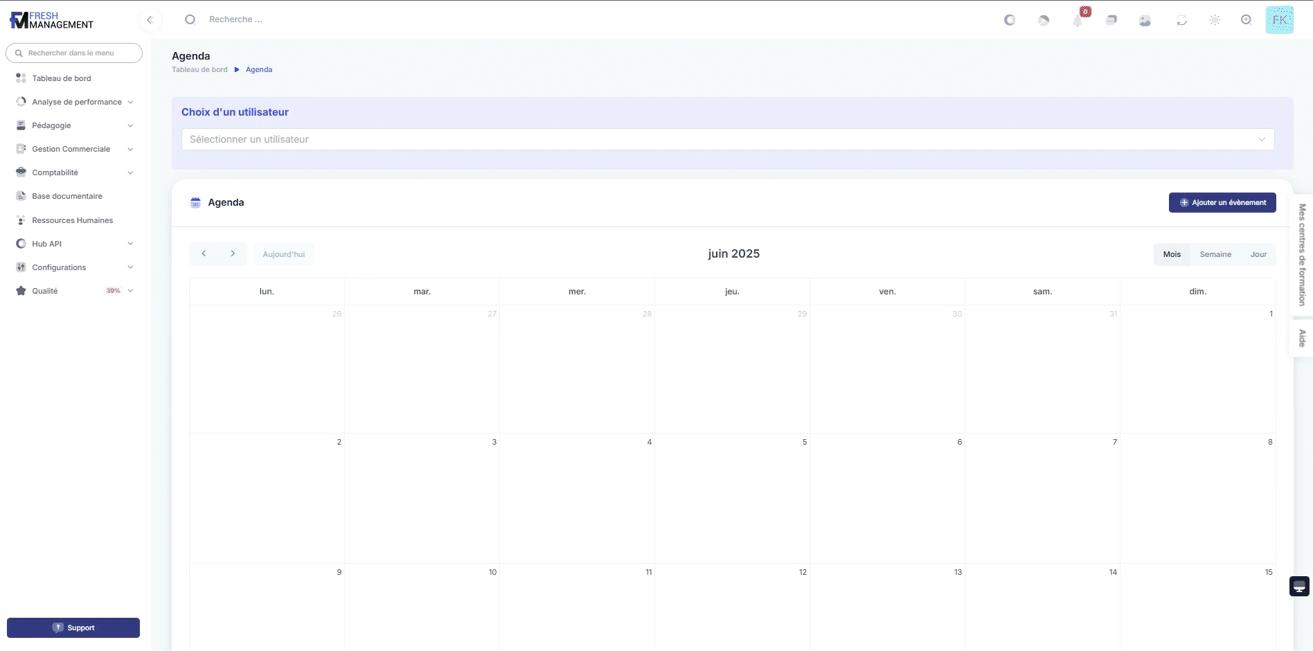 La fonctionnalité de planning de Fresh Management vous permet d’organiser votre emploi du temps et de gérer vos rendez-vous avec une grande efficacité.